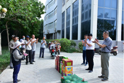 炎炎夏日送清凉,关爱职工暖人心。7月9日下午,学校开展职工防暑降温慰问工作,将关爱送到职工身边。党委书记赵光辉,党委副书记、校长张传辉,党委常委、副校长于军、石长青,分别带领相关部门领导看望慰问坚守在一线的执勤人员及环卫工人。