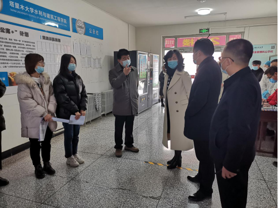 为贯彻落实自治区党委和兵团党委关于做好今冬明春常态化疫情防控工作的决策部署,争分夺秒依法防控、科学防控、精准防控,坚决维护各族师生生命安全和身体健康。12月14日,党委书记赵光辉,党委副书记张爱萍,党委常委、副校长石长青深入各学院检查指导疫情防控工作。