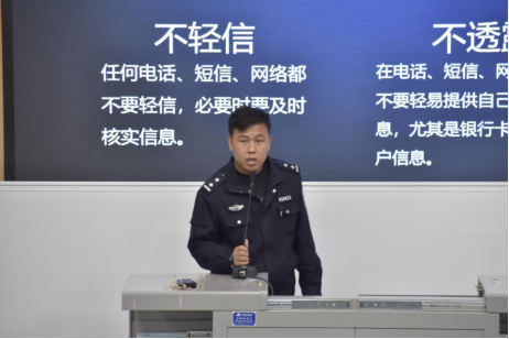 宣讲中,反诈骗中心人员通过鲜活的案例,从四个方面为大家详细讲解了电信网络诈骗的涵义、表现形式、识别防范方式、被骗后的紧急补救措施等知识,讲解了电信网络诈骗的多元性、普遍性、随机性等特点。