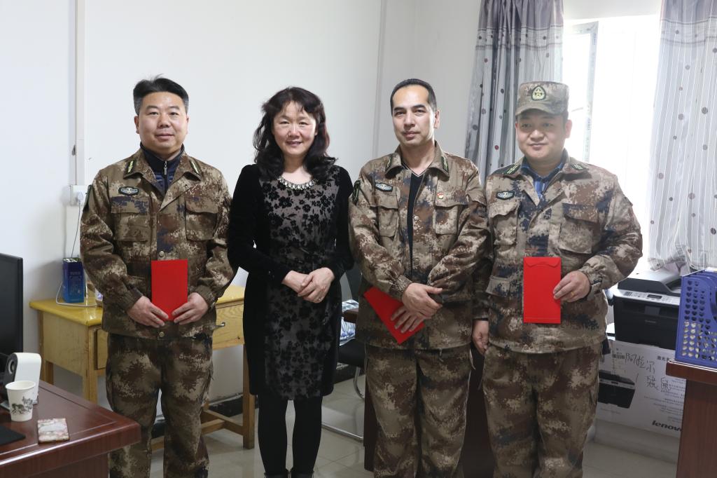 2月1日下午,塔里木大学副校长张利莉,在党委统战部负责同志陪同下,先后来到一师11团1连、7连、6连,亲切看望慰问我校“访惠聚”工作队。
