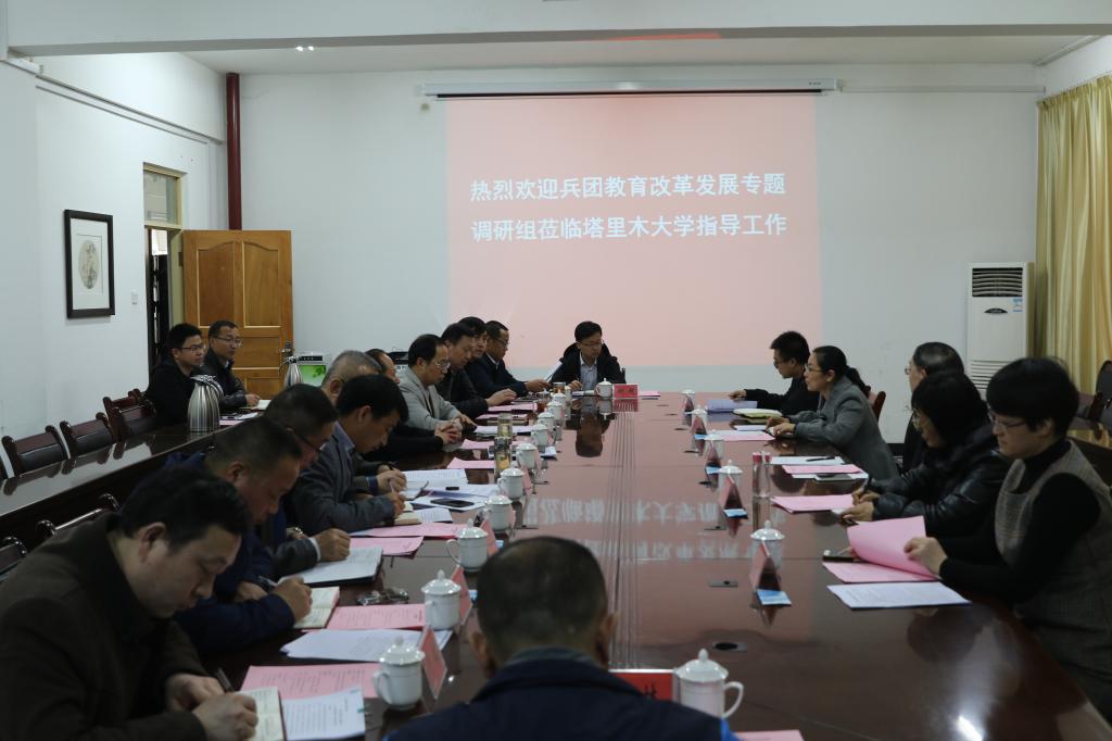 刘献君介绍了此次专题调研的背景、目的、意义和要求,对塔大60年来初心不改,用胡杨精神育人,为兴疆固边服务取得的傲人成绩给予充分肯定。他指出,此次调研旨在了解和掌握高等学校教育改革与制度创新的基本情况,总结可复制可推广的经验,坚持问题导向,提出着眼于长远发展的建议。希望塔大扎根南疆大地办大学,强化为党育人、为国育才导向,大力培养爱国爱疆、担当奉献的社会主义建设者和接班人,为落实党中央治疆方略,实现新疆社会稳定和长治久安总目标,服务兵团和南疆发展作出新的更大贡献。