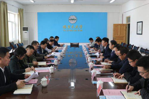 会上,张传辉欢迎张东升一行来校调研,介绍了学校贯彻落实兵团工作情况。他指出,学校认真贯彻落实党中央治疆方略和对兵团定位要求,贯彻落实兵团战略,紧紧围绕新疆社会稳定和长治久安总目标,提高政治站位,强化组织领导和顶层设计,落实工作责任,坚持扎根南疆大地办学,调整优化办学规模和学科专业结构,汇聚培养秉承“胡杨精神”的优秀人才,打造南疆人才蓄水池,大力开展科技创新和社会服务,支撑兴疆固边的智力需求,坚决维护校园安全稳定,夯实事业发展基础。他表示,学校将进一步深入贯彻落实总书记重要指示精神,大力培养爱国爱疆、担当奉献的新时代戍边人,不断加强人才队伍建设,提升科技创新服务能力,坚持问题导向,推动校内综合改革,落实“放管服”改革,全面提升办学综合实力和服务兵团和南疆发展能力。
