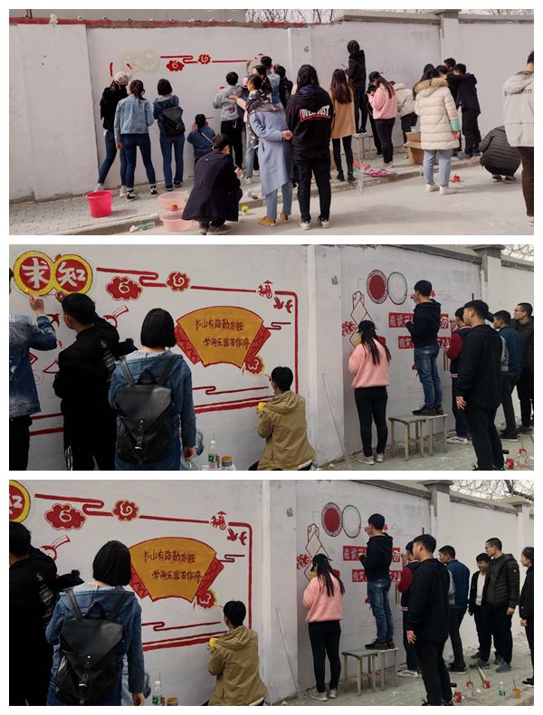 绘制西校区文化墙,弘扬雷锋精神,传播社会正能量。