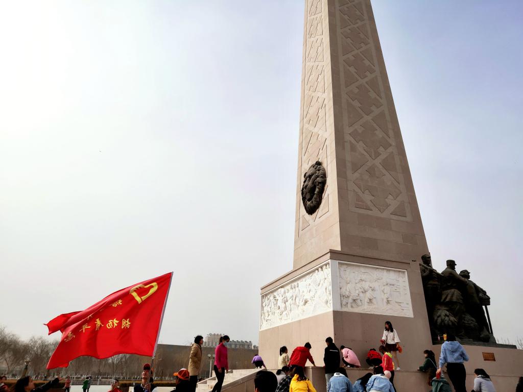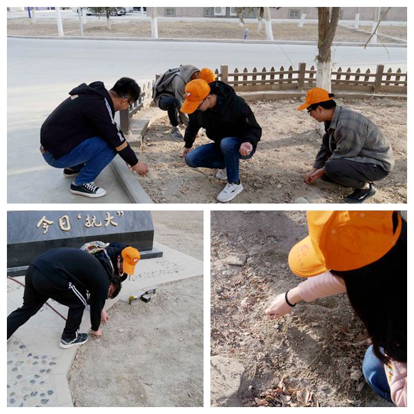 人文学院开展“青春学雷锋,奉献新时代”学雷锋志愿活动,对三五九旅纪念碑进行卫生清理。