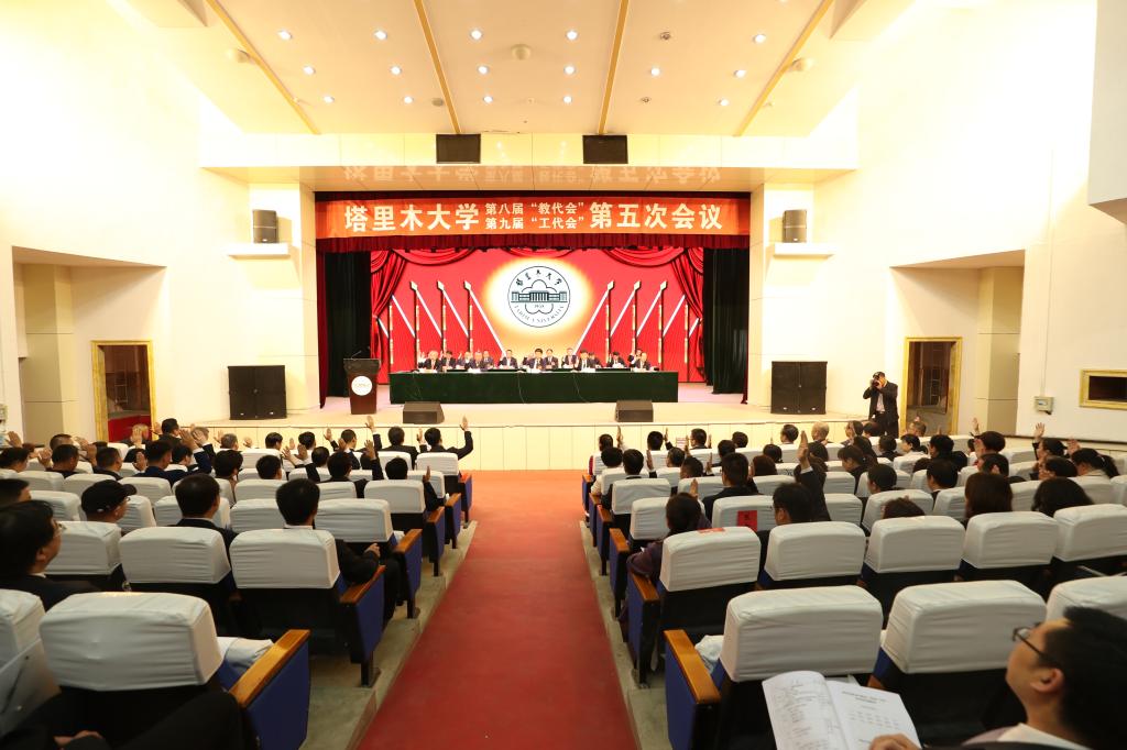大会表决通过了学校工作报告、财务工作报告、工会工作报告的决议,通过了《塔里木大学绩效工资分配总体方案(试行)》(审议稿)、《塔里木大学高校教师专业技术职务任职资格评审办法(试行)》(审议稿)。