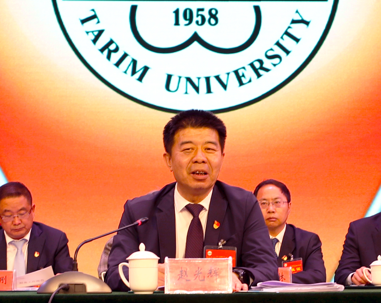 赵光辉讲话指出,2018年,塔里木大学无论是党代会的胜利召开、审核评估工作的顺利完成、校庆的成功举办,还是人才培养、学科建设、科技创新和社会服务等各方面工作都取得了比较好的成绩。特别是在艰巨的工作任务和诸多困难面前,大家都经受住了考验,表现出我校广大党员干部和师生员工良好的精神风貌。同时,我们的工作得到了党中央和自治区党委、兵团党委的充分肯定。可以说,2018年学校收获满满,成绩可圈可点。当然,这些收获既是党中央和自治区党委、兵团党委关心支持、社会各界人士热情帮助的结果,更是我校广大师生员工共同努力的结果。
