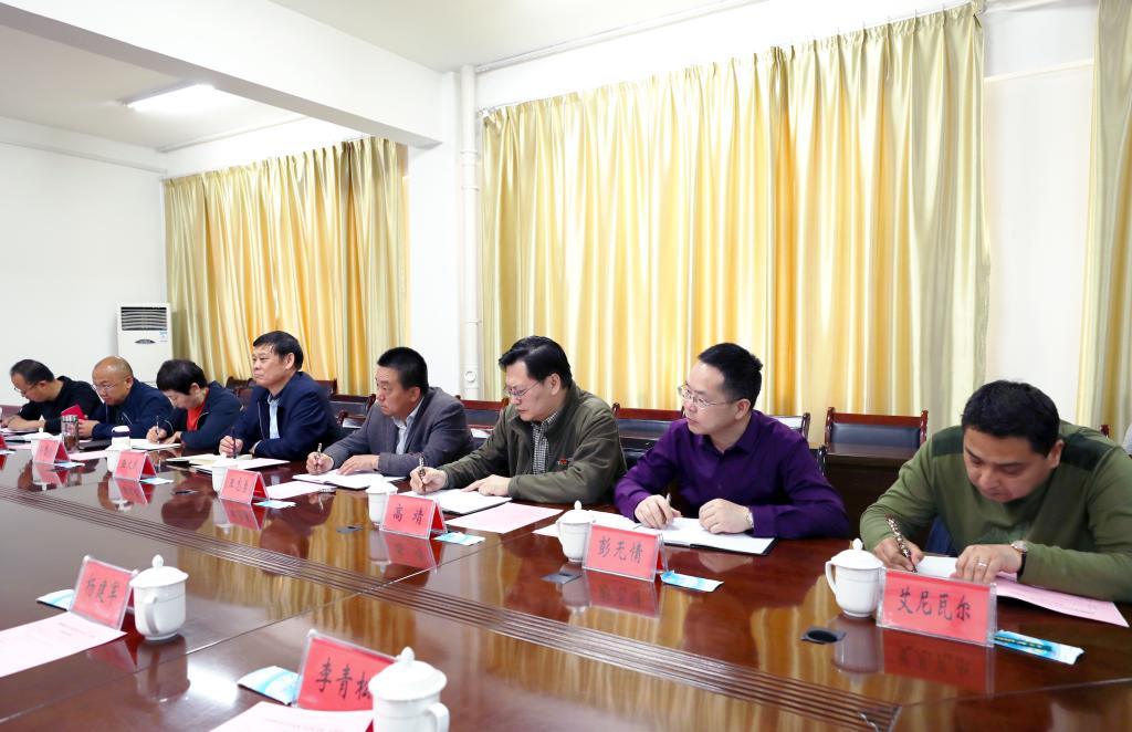 会上,张传辉欢迎巫文武一行来校访问交流,介绍了学校的历史沿革、发展历程、办学特色和发展思路等情况。希望两校全面贯彻总书记重要指示精神,牢牢坚持正确办学方向,强化为党育人、为国育才导向,进一步深化交流合作,拓展合作领域,提升合作质量,大力培养爱国爱疆、担当奉献的新时代戍边人,共同努力为服务新疆工作总目标和向南发展作出新的更大贡献。