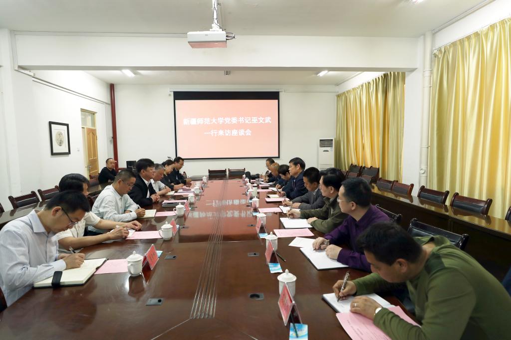 4月14日,新疆师范大学党委书记巫文武,带领该校党委常委、纪委书记王志勇,党委常委、副校长孙秀玲,党委常委、宣传部部长高靖等来校考察访问,受到我校党委副书记、校长张传辉,党委副书记、纪委书记单洪山,党委常委、副校长曲义勇等领导热情接待。双方在行政楼317室举行座谈会。