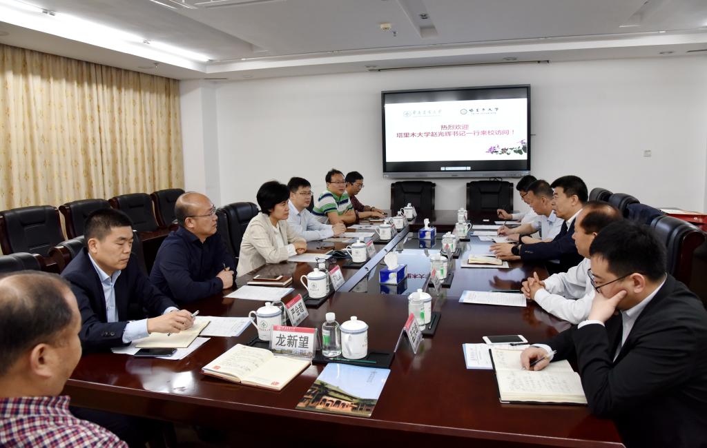 会上,赵光辉感谢华南农业大学对塔大事业发展的支持帮助。他指出,两校虽然相隔千里万里,但两校渊源颇深,特别是塔大教师在学历提升和科研水平提升方面都得过华南农业大学的无私帮助。他强调,新时期,塔大在服务兵团和南疆发展中承担着新使命新担当,希望华南农业大学发挥自身优势,接续助力塔大加快推进兵团特点、南疆特色高水平大学建设,为实现新疆社会稳定和长治久安作出新的更大贡献。