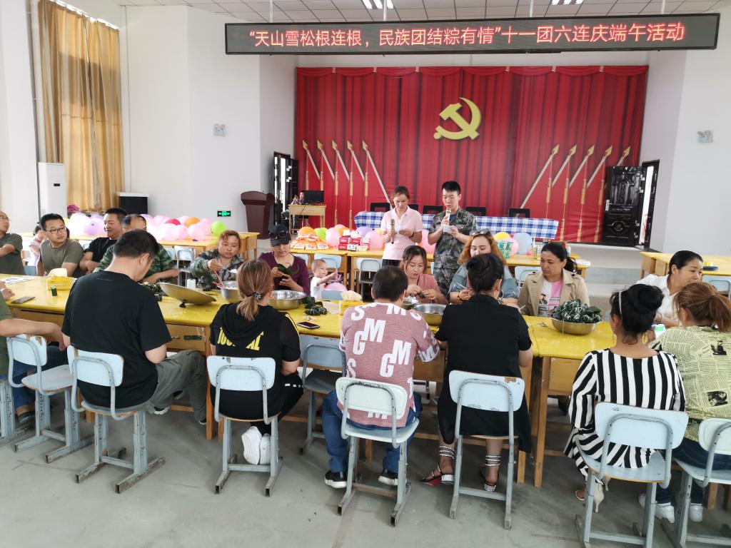 6月6日下午,由11团6连“访惠聚”工作队发起,11团1、7连“访惠聚”工作队、连队两委干部及少数民族群众共同参与的“共度端午佳节,携手品味粽情”活动在6连职工文化大礼堂开展。