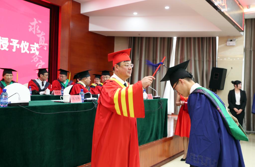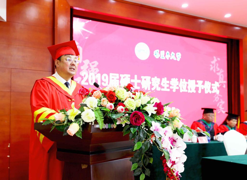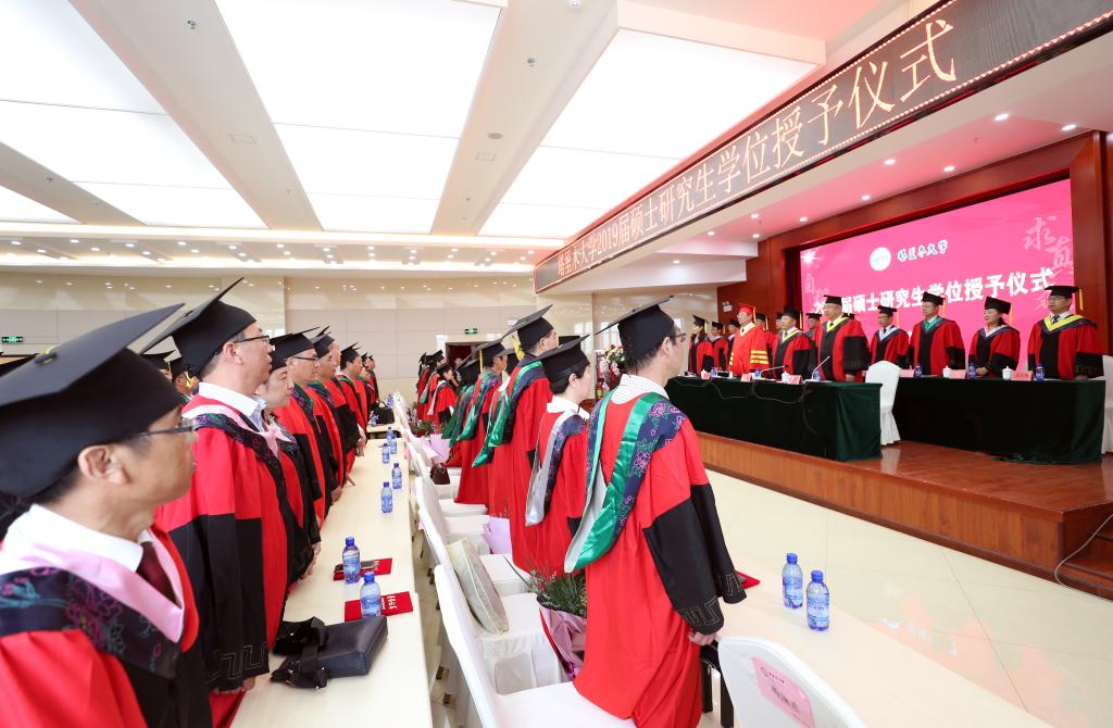 党委副书记、校长张传辉,党委常委、副校长卢光志,副校长张利莉,党委常委、副校长曲义勇,以及相关部门、各院领导出席仪式。2019届全体硕士研究生及导师参加仪式。