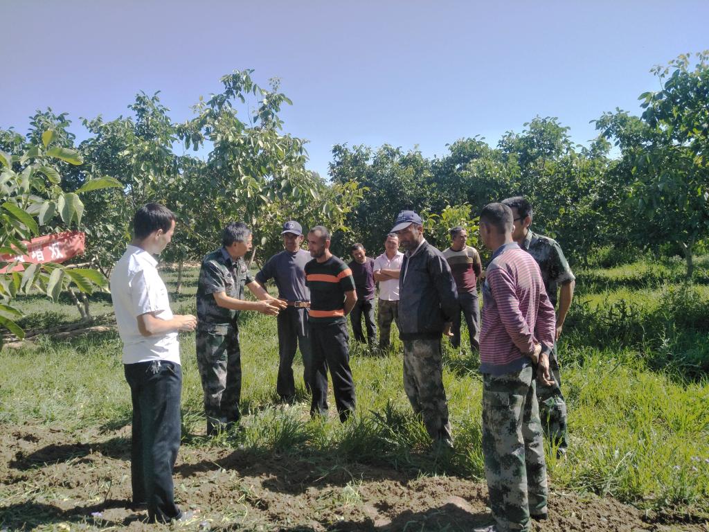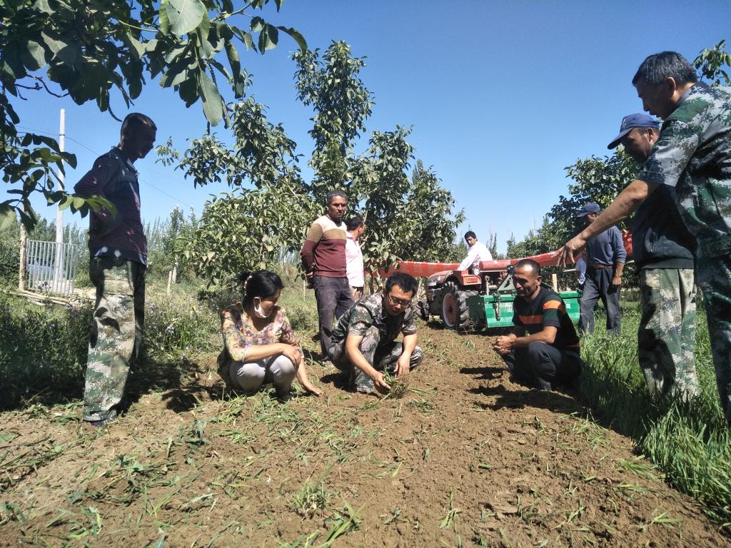 6月20日,学校驻225团喀孜纳克村“访惠聚”工作队开展种植油菜、野麦等绿肥增效示范课,活动在村民阿西木·艾合买提家的24亩核桃地进行。