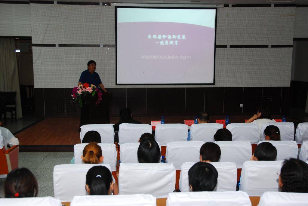 下午,欧江华教授作了《乳腺癌诊治新进展——健康教育》的讲座,欧讲授运用自身的专业知识和多年的临床经验,以图文结合的方法,针对什么是乳腺癌及其危害,乳腺癌治疗及不同期别的结果,我国乳腺癌发病率的增长率,乳腺癌的最佳治疗方案、乳腺癌的预防等知识进行了讲解。同时,欧教授向听讲座的人员普及乳腺癌可以早预防、早发现、早治疗的健康意识。现场的女教职工表示对乳腺疾病有了更深刻的认识,今后将改变不良生活习惯,定期做好乳腺检查。