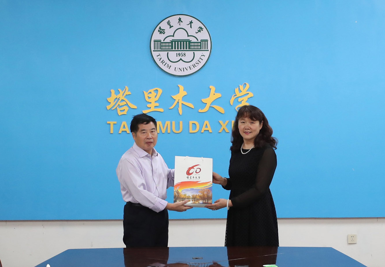 座谈会期间,双方共同观看了塔里木大学建校60周年宣传片,张利莉代表学校向喻树迅院士赠送了60周年校庆纪念品。