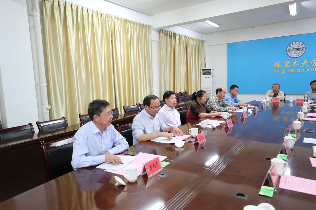 张利莉主持会议,对喻树迅院士一行的到来表示欢迎,对中国工程院和中国农业科学院长期以来对我校事业发展的关心、支持和帮助表示感谢。介绍了学校发展情况,希望双方能够进一步深化交流合作,助力塔大在服务新疆工作总目标、兵团和南疆发展中作出新的更大贡献。