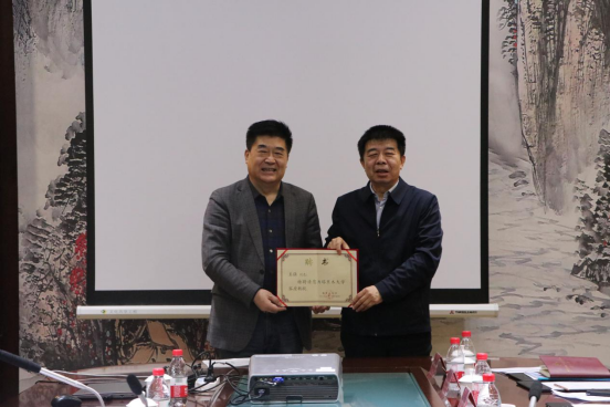 会上,举行了客座教授聘任仪式,聘任王强研究员为我校客座教授,赵光辉为王强研究员颁发了聘书。
