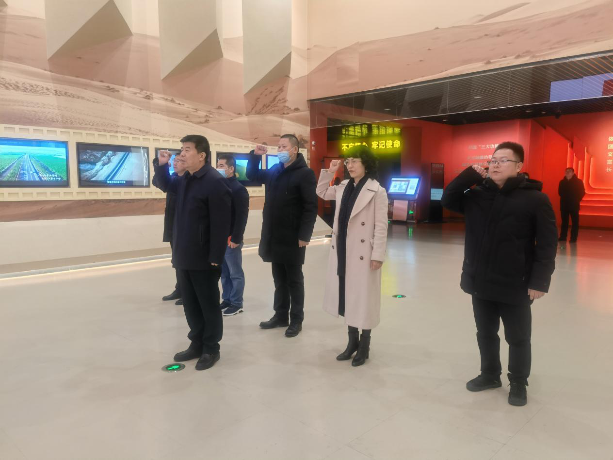 赵光辉一行先后参观了兵团军垦博物馆、周总理纪念馆。在兵团军垦博物馆重温了入党誓词,深入了解兵团成立60多年来,几代兵团人牢记党中央赋予的职责使命,弘扬兵团精神、老兵精神和胡杨精神,为实现新疆社会稳定和长治久安总目标再立新功的光辉历程。
