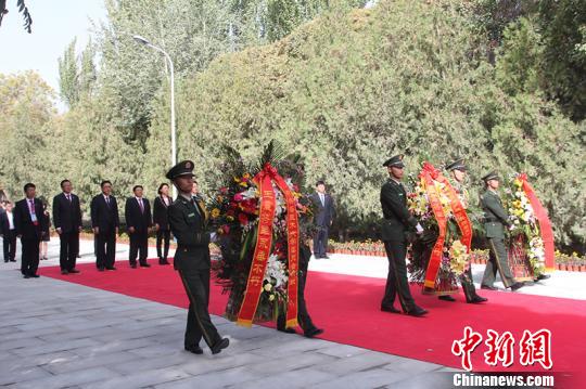 人们向新落成的王震铜像敬献花篮。 李桃摄