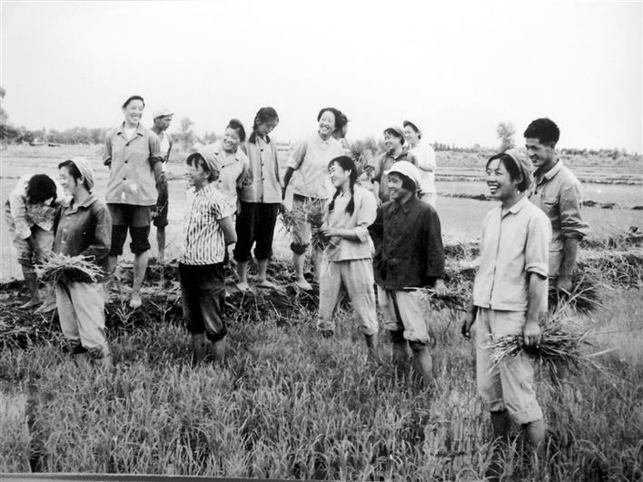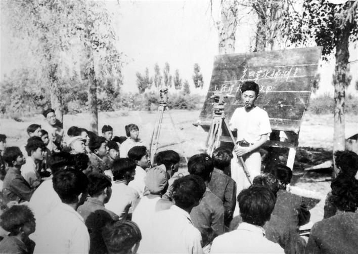 建校初期条件艰苦,学生在地头学习。