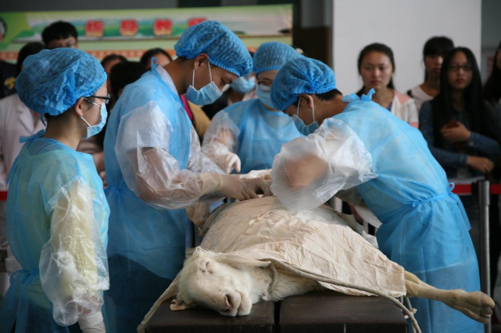 日前,塔里木大学动物科学学院兽医专业的教师在进行实践教学。/赵双喜