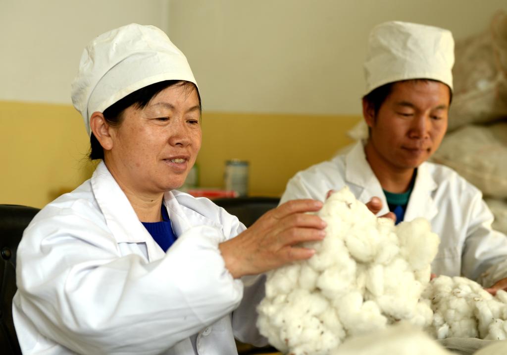 10月25日,李琴(左)在检测棉花的衣分及品质。/王志清
