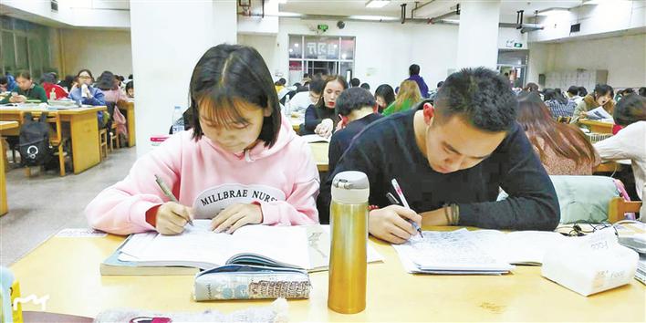 胡晓晴说:“那段日子,每天7时起床,12时入睡,不是在背考研内容,就是在做题。幸好学校有考研教室,我不用为每天占座而犯愁。”大部分时间,胡晓晴和“研友”们扎堆复习,并肩作战。