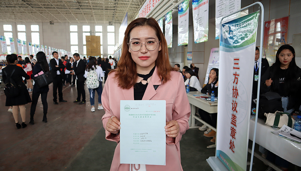 胡杨网阿拉尔4月13日讯(记者杨永霞)“太好了,我找到回阿克陶的工作了。”穿着粉色裙子,笑容甜美的布海丽齐·麦麦提乌柔孜,拿着手里的三方协议高兴地对朋友说。