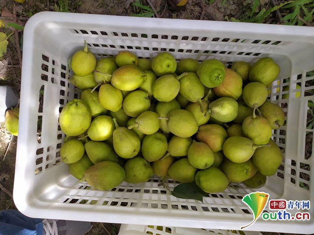 摘下的一筐香梨。中国青年网通讯员 杜京京 供图
