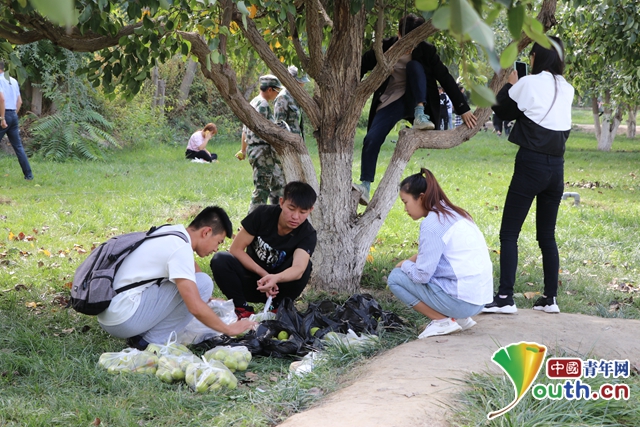 学生在整理采摘的“成果”。中国青年网通讯员 杜京京 供图