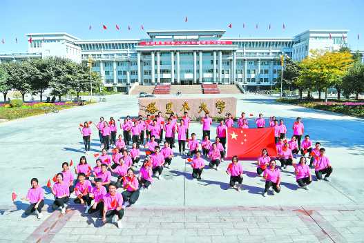 10月1日,塔里木大学学生在教学楼前摆出“70”字样,共同祝福新中国成立70周年。□本报记者邹懿摄