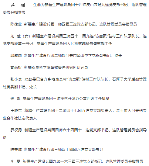 一、全国脱贫攻坚先进个人表彰对象(兵团,11个)