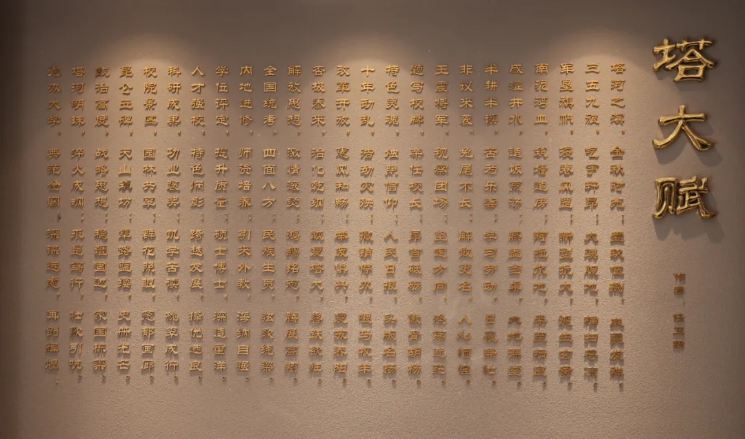 阿拉尔市的红色风景远不止这一处,沿着城市中轴线往东,记者来到了因传承胡杨精神而声名远扬的学校——塔里木大学。