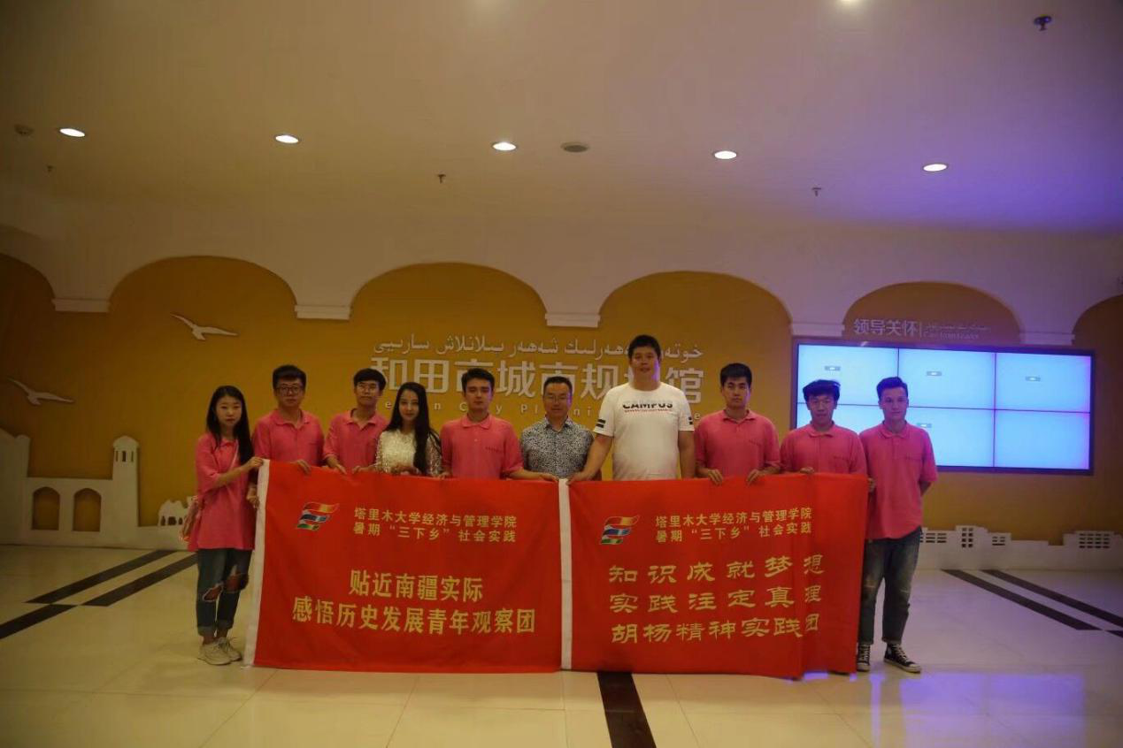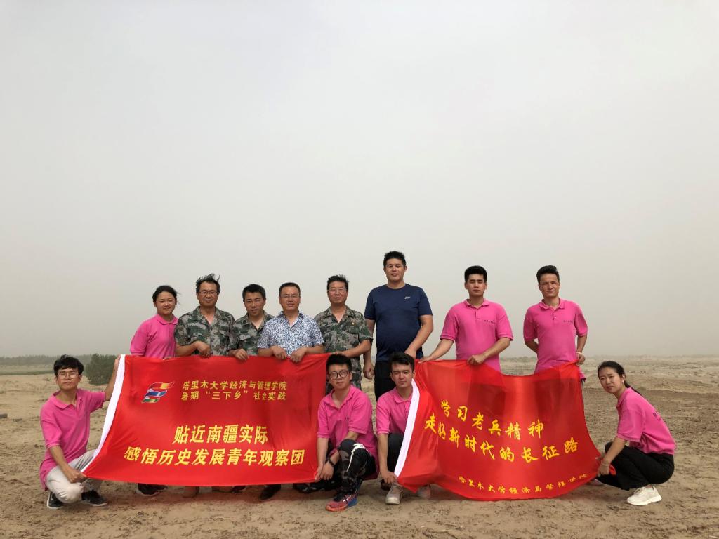 用青春脚步丈量祖国大地,用青春力量服务南疆发展。7月6日至16日,塔里木大学经济与管理学院“贴近南疆实际,感悟历史发展”青年观察团在和田市、墨玉县、224团、47团、于田县、225团等地,开展暑期三下乡社会实践活动。实践团成员在指导老师的带领下,沿阿和公路纵穿塔克拉玛干沙漠,来到实践活动目的地。此次暑期三下乡实践活动旨在感悟南疆发展变化,体验兵团精神、老兵精神、胡杨精神。