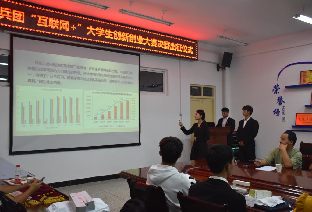8月27日晚,第五届兵团“互联网+”大学生创新创业大赛决赛出征仪式在工科楼229会议室举行,教务处副处长龚䶮,机电院党委副书记胡松林,辅导员和入围决赛的5支队伍参加了出征仪式。