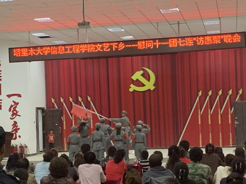 在中秋节来临之际,信息工程学院党委副书记张丽娟带领教师代表、学生赴十一团七连慰问看望我校“访惠聚”工作队,为工作队和连队职工在中秋节前送上节日的祝福和精彩的文艺节目。