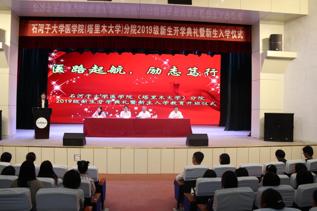 9月27日晚,石河子大学医学院(塔里木大学)分院举行2019级新生开学典礼暨新生入学仪式。学院党总支副书记、院长谢建新,党总支副书记、副院长胡斌,副院长李思源,副院长吴燕,全体辅导员、班主任及全体2019级新生参加。典礼在大学生活动中心举行,由胡斌主持。