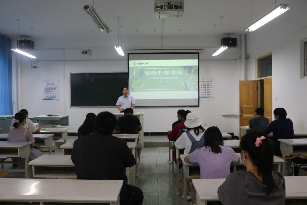 8月30日上午,动物科学学院教务办组织各班班委在综合楼113室进行教学楼内体感异常处置演练,院党委副书记魏晓柳、副院长任道全、及相关负责老师参加。