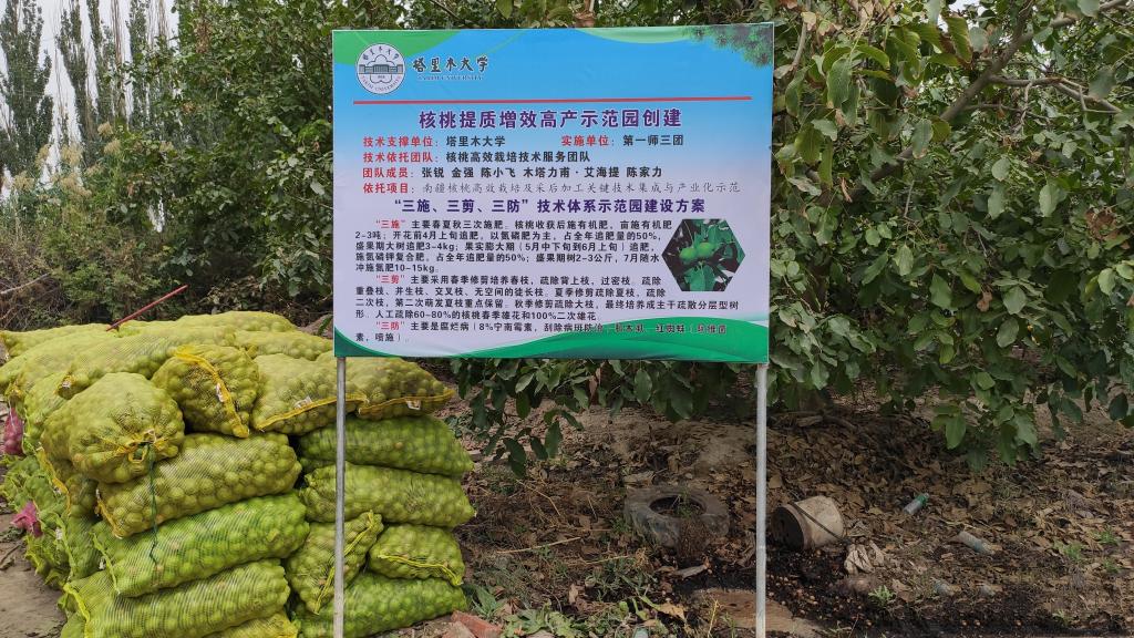 9月6日,塔里木大学核桃高效栽培技术服务团队张锐教授,带领团队成员陈小飞、金强及研究生,来到第一师三团开展核桃提质增效示范园创建和核桃采收期技术服务。