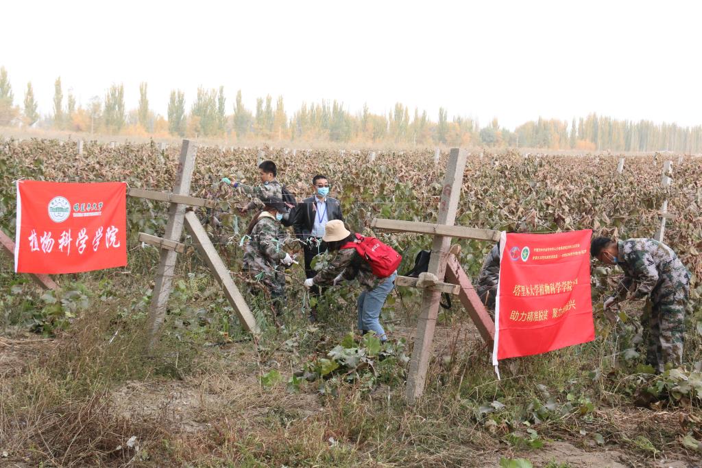 为助力脱贫攻坚,引导广大青年学子深入基层一线,投身新时代“三农”工作,10月26日,由植物科学学院党委副书记朱天生、园艺林学系张琦教授以及园艺专业60余名学生组成的实践团走进13团21连葡萄园开展调研服务。