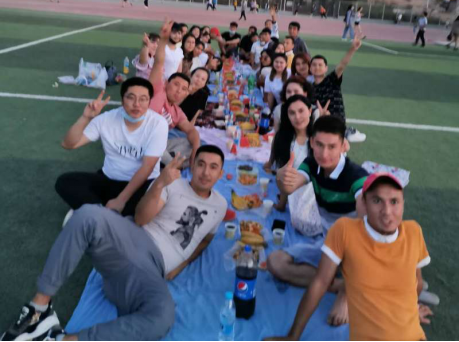(生科院教职工操场与交友学生跳民族舞共度节日)