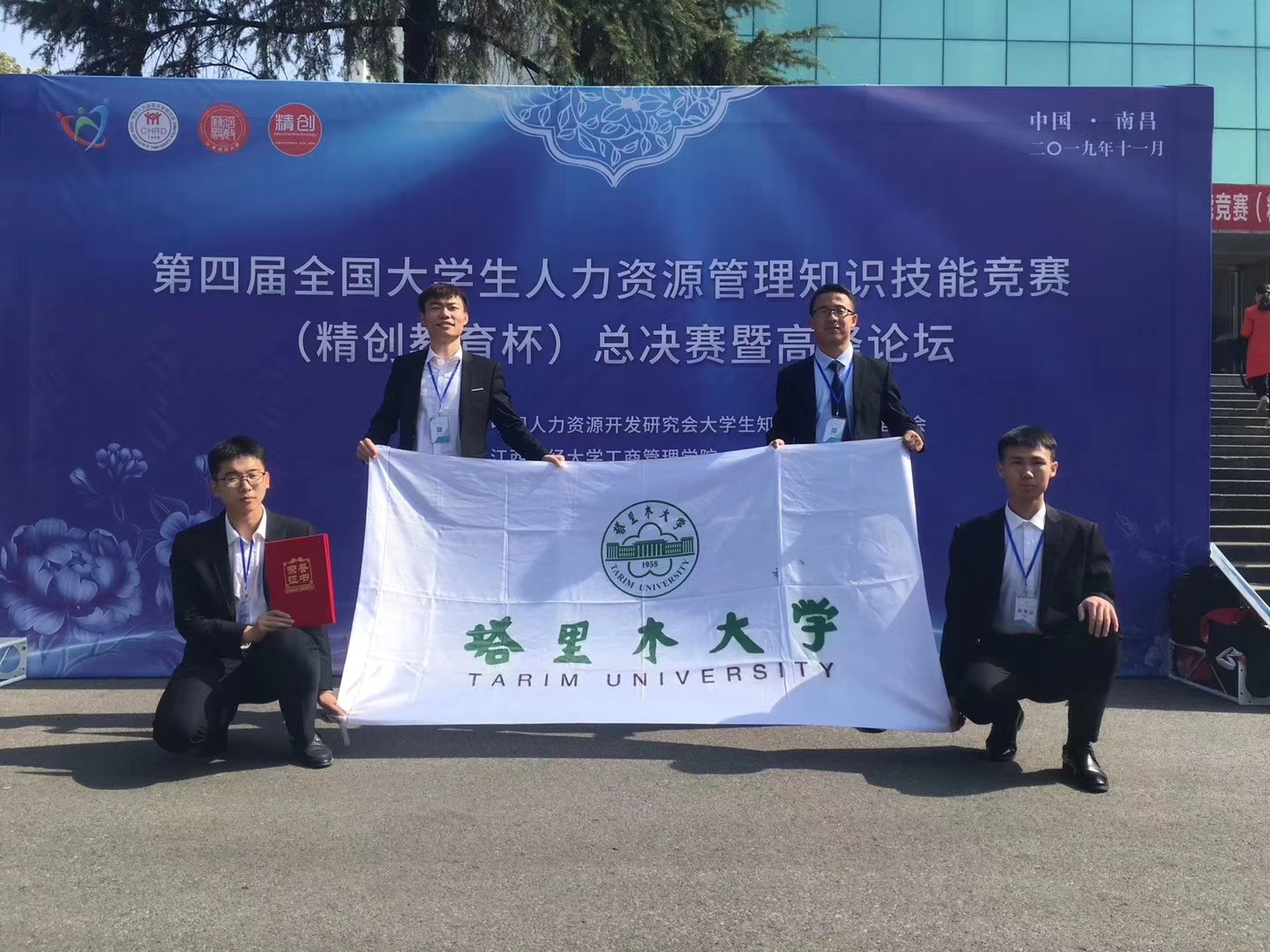 总决赛从全国323所本科高校,7个本科组大区赛,到总决赛晋级的70所高校参加,跟往届相比今年的竞赛规模更大、参赛层次更高。经过两天的激励对抗,人力资源管专业田进荣、刘俊虎,物流管理专业唐玉嵋、财务管理专业马志斌同学组成的胡杨梦之队最终获得一等奖。