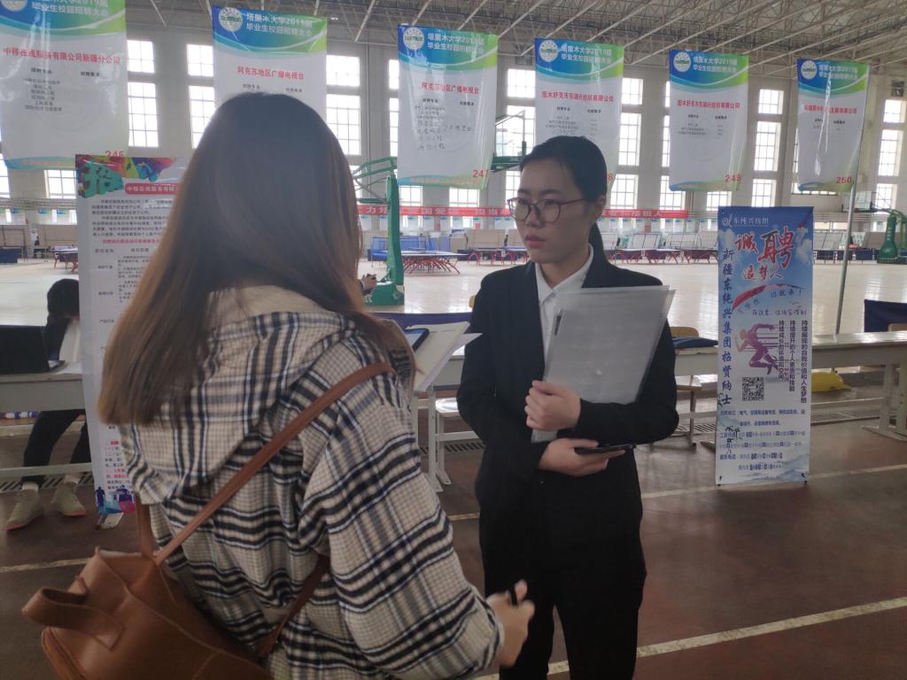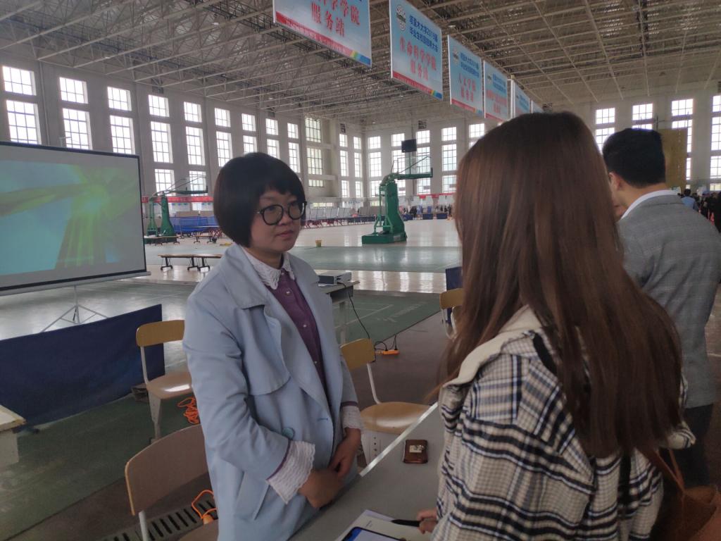 食品质量与安全19-1班蒋莉莹想得到一份和所学专业相关的工作,对化验检测这类的职位比较有兴趣。她说自己看重用人单位所处的区域和发展潜力,从与公司的交流中就可以看出公司的实力。她说,自己选择留在家乡工作,做求职简历,关注公司,筛选公司,了解公司,这些都是她为之做的准备。她说,自己所学的专业,考研学生人数较多,自己目前处于调剂当中,来到招聘会现场,可以多一个选择。