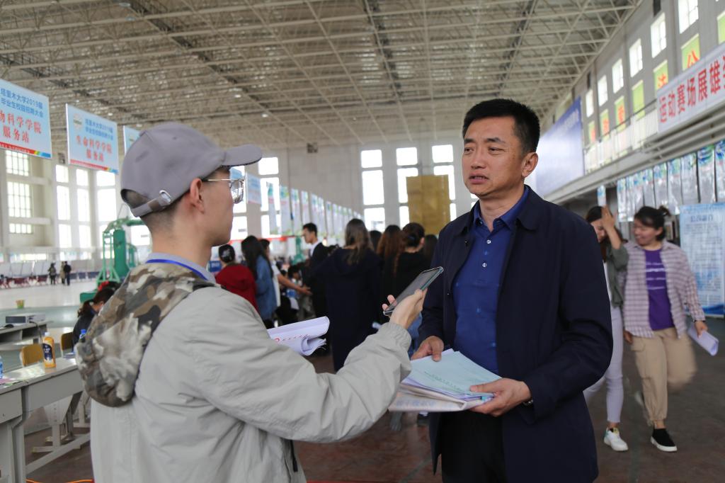 为切实做好我校毕业生就业工作,搭建好毕业生与用人单位的交流平台,积极为用人单位输送优秀人才,4月11-12日,学校举办2019年春季校园招聘大会。生命科学学院领导班子高度重视,党委书记白红进,党委副书记、院长万传星,来到招聘会现场了解招聘情况,与用人单位和毕业生深入交流。各系书记、学院辅导员及毕业班班主任全部亲自到场组织毕业生有序应聘。
