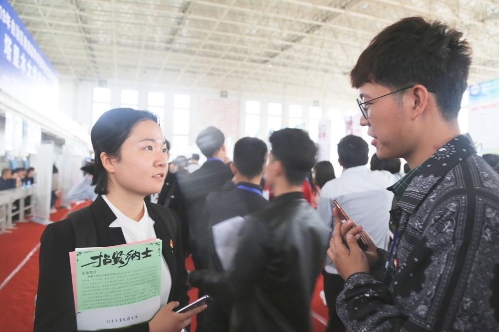 到场的毕业生积极与招聘单位沟通,主动了解用人单位情况,积极寻求适合自己的工作岗位。毕业生在投递个人简历时也显得更为谨慎,在关心薪资前景的同时,更为详细地咨询用人单位情况,少了些盲目,多了些理性。