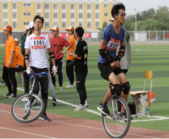 西区操场的欢呼声一浪高过一浪,激烈的独轮车比赛拉开序幕。随着裁判一声令下,独轮骑士们如箭离弦,在赛道上疾驰前行。看台上的同学们的心和赛道上的选手紧紧连在了一起,随着比赛的激烈竞争起起落落,紧张热烈的气氛和同学们的欢呼声为比赛锦上添花。在经历了一轮激烈的角逐之后,每一组的冠军也产生了。全媒体中心记者深入现场采访了两位比赛选手。