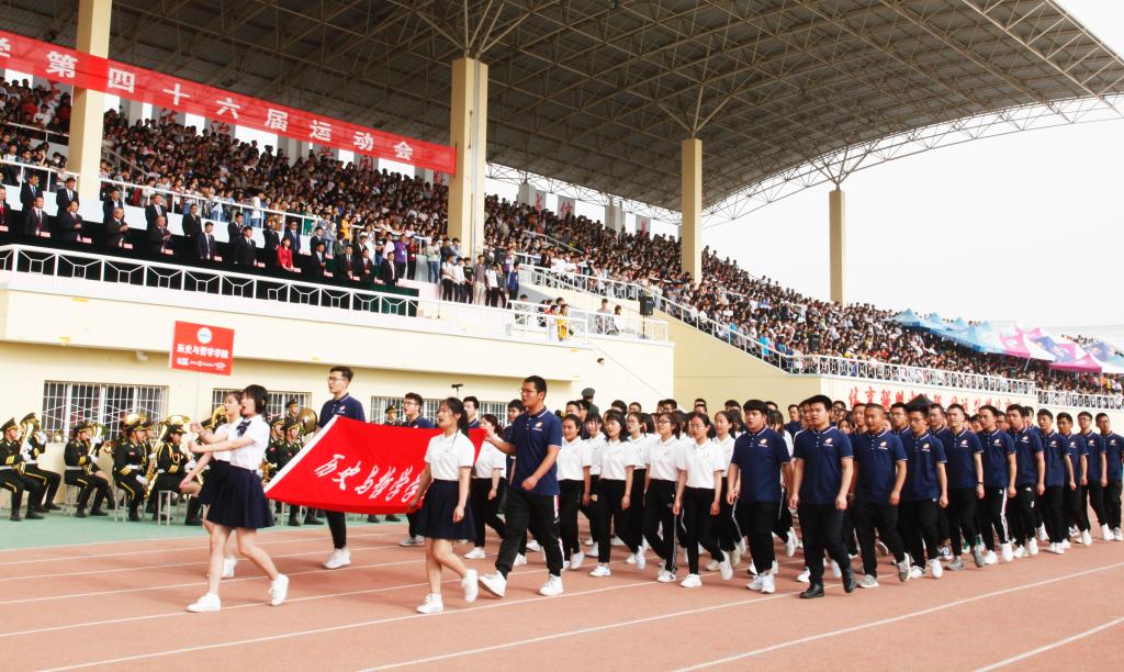 现在向我们走来的是历史与哲学学院代表队。他们精神抖擞,步伐坚定,灿烂的微笑写着青春的热情,嘹亮的口号体现着强大的实力,沸腾的热血证明他们必胜的决心。同心协力是他们的奋斗宗旨,顽强拼搏是他们的永恒信念。他们将用激情诠释梦想,用拼搏打造辉煌。相信他们一定会旗开得胜,收获成功!