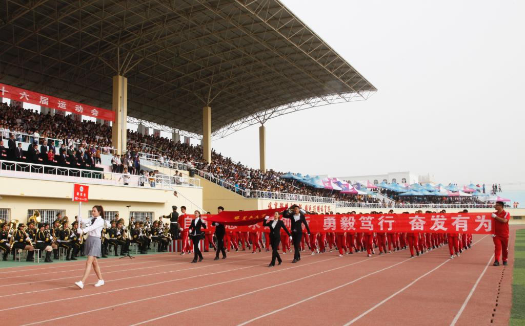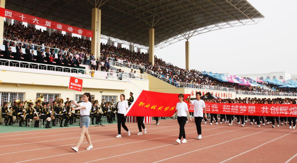 迎着朝阳、沐浴着春风。职业技术学院的同学们迈着铿锵有力的步伐、昂首挺胸的向主席台走来。他们在训练场上挥洒汗水,不畏艰辛,不惧未来,风雨兼程,敢于挑战自我,决心发扬体育竞技中的乐观向上,永不言弃的精神。朝气与活力在每一个人身上洋溢,友爱与鼓励在每一个人心中传递,稳中求进,挑战自我是他们的起点。不懈努力,不倦追求是他们的历程,突破自我,争创第一是他们的目标,昨日的汗水必能成就今朝的辉煌!