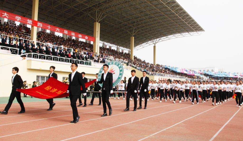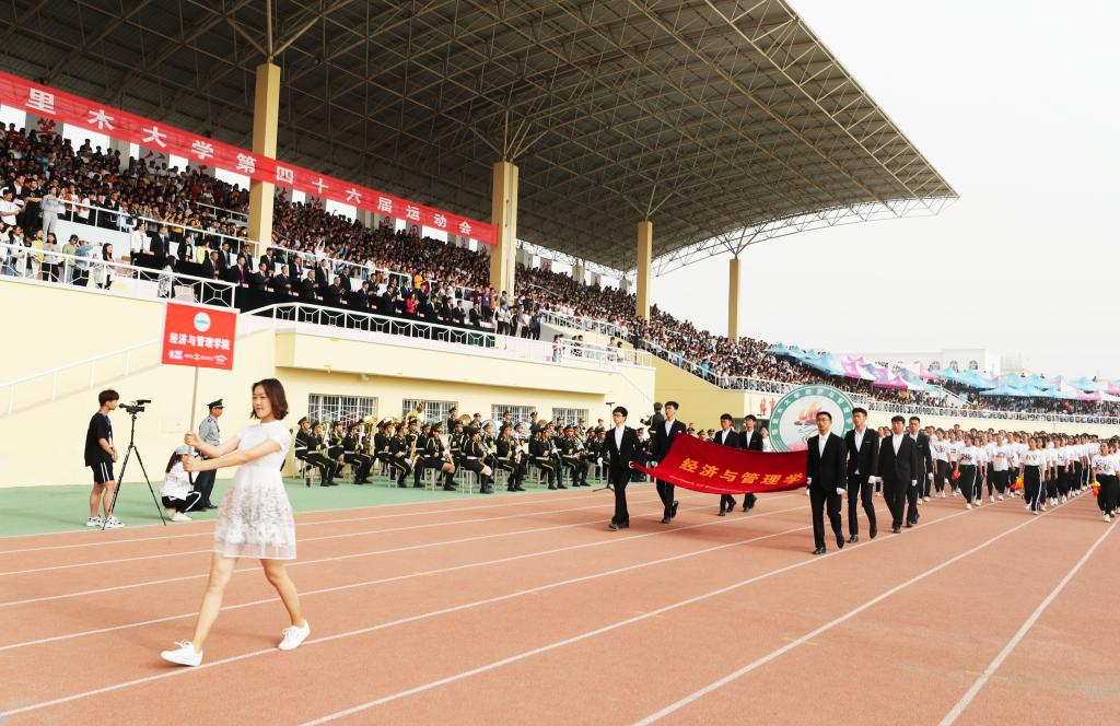 用胡杨精神育人,为兴疆固边服务。现在迎面走来的是经济与管理学院300人组成的胡杨方队,赛道上奋力奔跑的是飞扬的青春,跨过栏杆便得到了新的高度,投掷出去的是我们梦想,收获的将会是汗水和回忆。踏碎晨光,迎着朝阳,他们踏着坚实的步伐,雄赳赳,气昂昂,迈上竞技场。他们学胡杨,做胡杨,坚毅顽强。