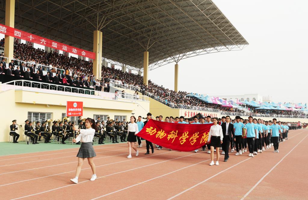 现在向我们走来的是动物科学学院代表队,他们各个精神抖擞,斗志昂扬;他们理论基础扎实,专业技能熟练;他们心中有胡杨,下得去、留得住、用得上、干得好;他们牢记为兴疆固边服务的理念,如同现在坚定的步伐一般,初心不改,再攀高峰。