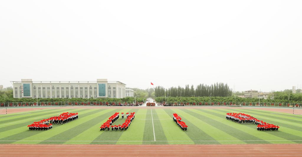 “花环的解说词”:像冉冉红日,像初升的太阳,像塔大今日,无限的荣光,洒遍这绿荫场上。61年追梦,扎根边疆。60年求索,勇担使命,坚定步伐铭刻发展年轮,自强不息耕耘新疆大地,以梦为马,不负韶华,塔大学子已在南疆遍地开花。